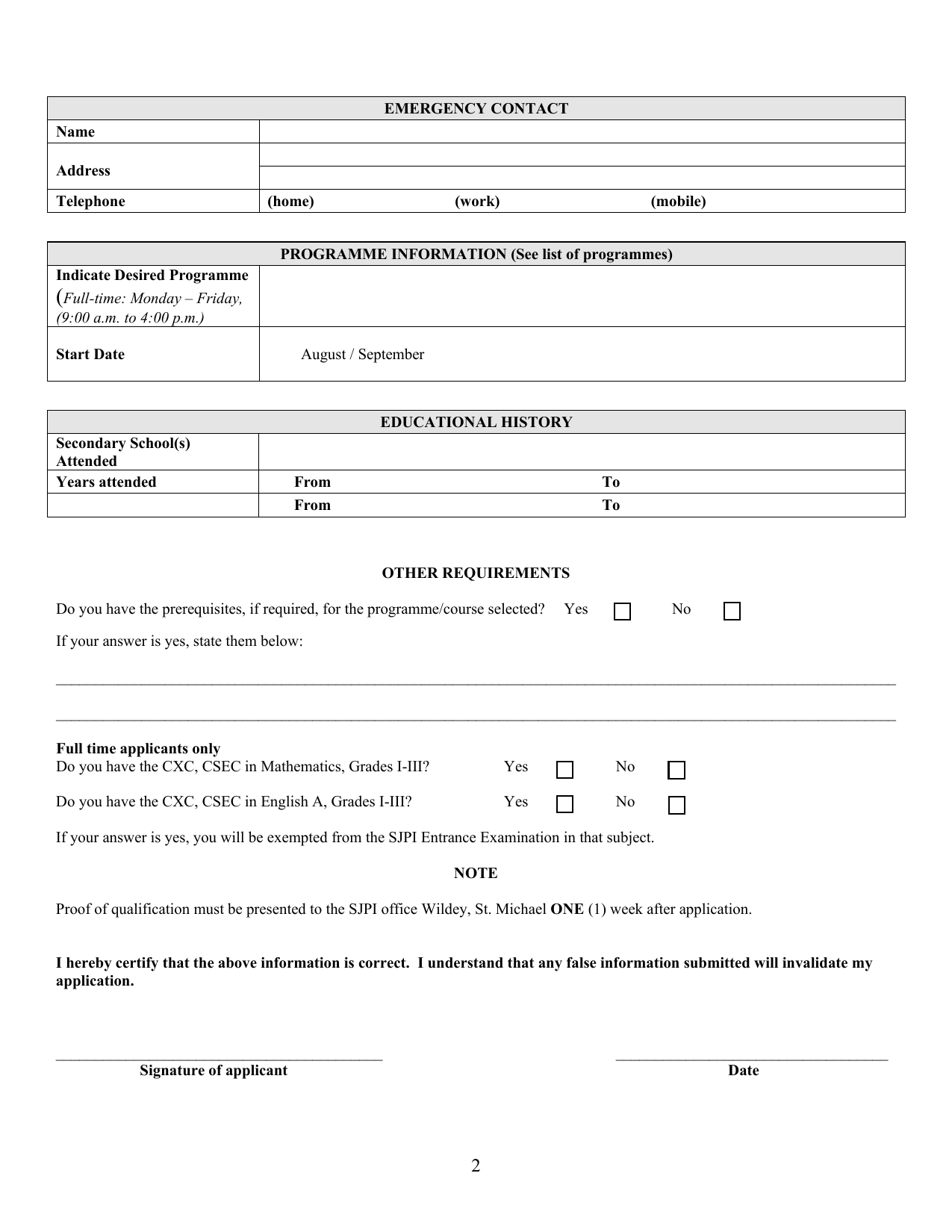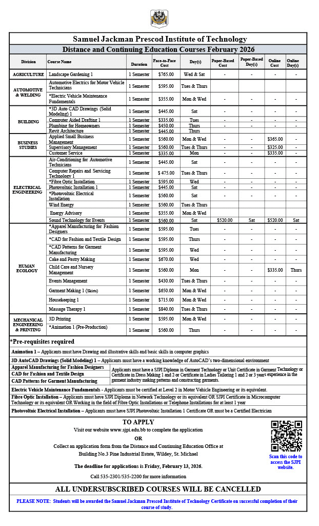 Students will be awarded the Samuel Jackman Prescod Institute of Technology Certificate on successful completion of their course of study.